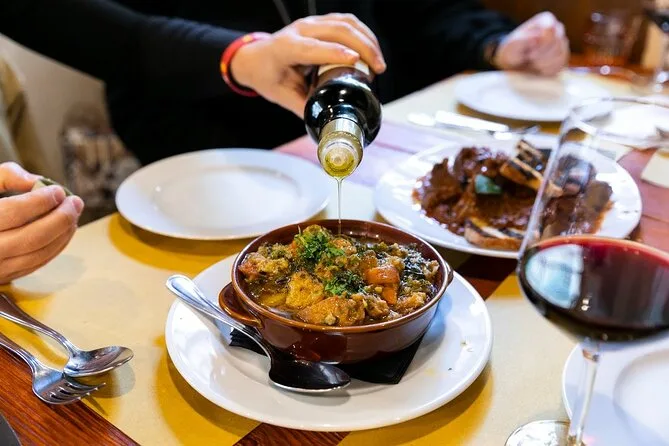 La tua giornata comprende più di 10 degustazioni autentiche dai mercati locali — pensa a ribollita o pappa al pomodoro, coccoli, panini con lampredotto per i più coraggiosi, taglieri di formaggi e salumi toscani accompagnati da vini selezionati versati generosamente. Concluderai con un gelato vero e un piatto segreto prima di tornare nel cuore di Firenze con la pancia piena.