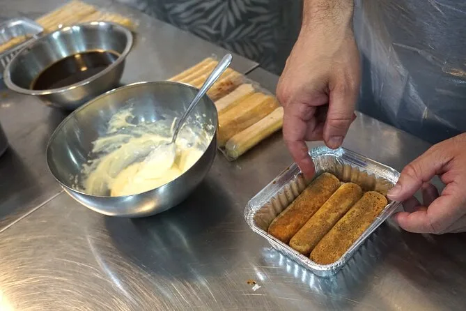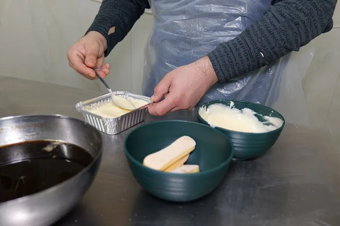Abbiamo iniziato con la bruschetta—pomodorini tagliati, mozzarella, olio d’oliva su pane spesso—ma qui aveva un sapore tutto speciale. Forse era l’olio o semplicemente l’atmosfera di Napoli. La parola chiave per questo corso è sicuramente “corso pizza e tiramisù a Napoli,” ma in realtà sembrava più un pranzo in famiglia che una lezione. Antonio ci raccontava aneddoti sulle ricette di sua nonna mentre stratificavamo mascarpone e biscotti imbevuti di caffè per il tiramisù. Ci faceva assaggiare tutto durante la preparazione (confesso che ho rubato più di un cucchiaio). Qualcuno di un altro gruppo ha provato a pronunciare “savoiardi” e siamo scoppiati tutti a ridere, compreso Antonio.