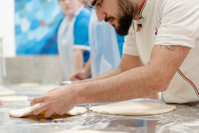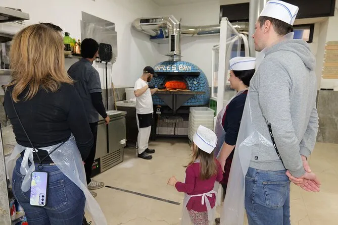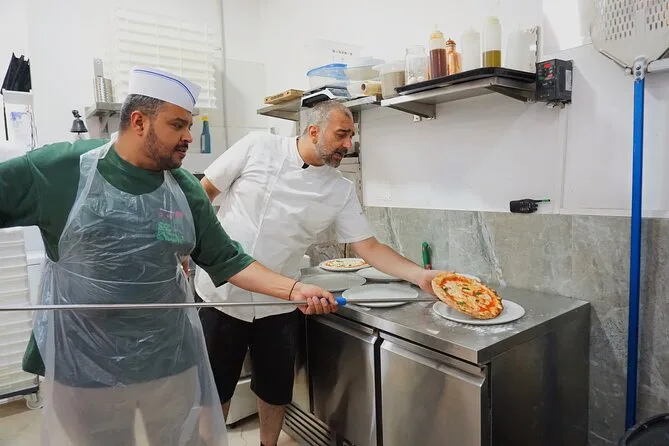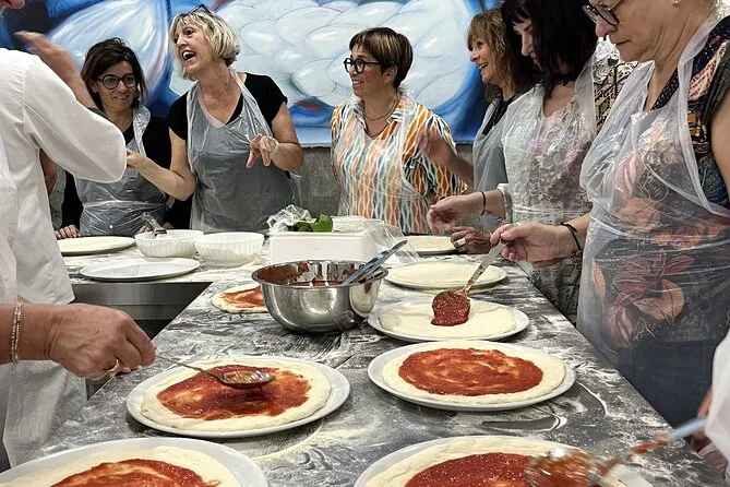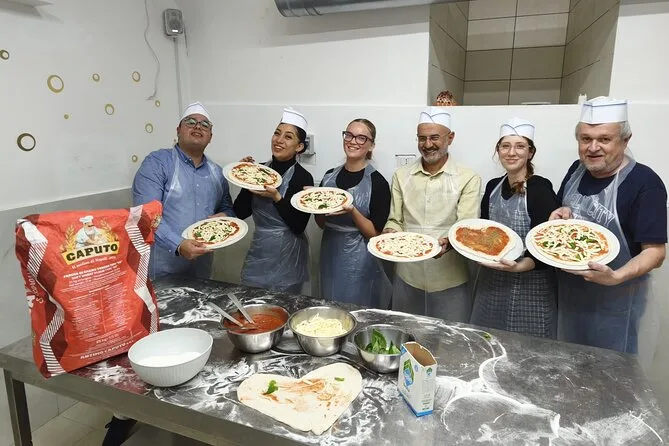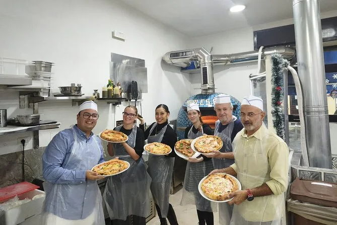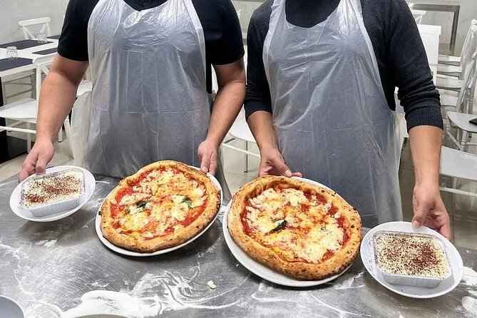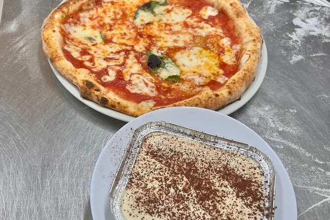 Il pomeriggio comprende tutti gli ingredienti per preparare la pizza margherita da zero più bruschetta come antipasto; guida pratica di uno chef locale; grembiuli e cappelli da chef a disposizione; bevanda alcolica con il pasto; tiramisù fatto in casa (che preparerai tu stesso); limoncello servito con il dolce; deposito bagagli gratuito; e ricette stampate da portare a casa per rifare tutto dove vuoi.