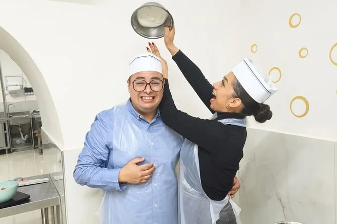 Devo ammettere, ero soprattutto curioso del tiramisù. Ma appena siamo entrati in quella cucina a Napoli, con la farina che volava nell’aria e tutti stretti intorno al grande tavolo di legno, mi sono subito lasciato coinvolgere. Il nostro chef, Antonio (con quel humor veloce tipico dei napoletani), mi ha dato un grembiule e ha sorriso come se sapesse che non avevo mai impastato prima. Ci ha mostrato come stendere e piegare l’impasto della pizza—le mie mani si incollavano dappertutto all’inizio—e continuava a dire “piano, piano” mentre la mia amica cercava di dare una forma più o meno rotonda. Intanto il profumo dei pomodori che sobbollivano dietro di noi mi distraeva continuamente.