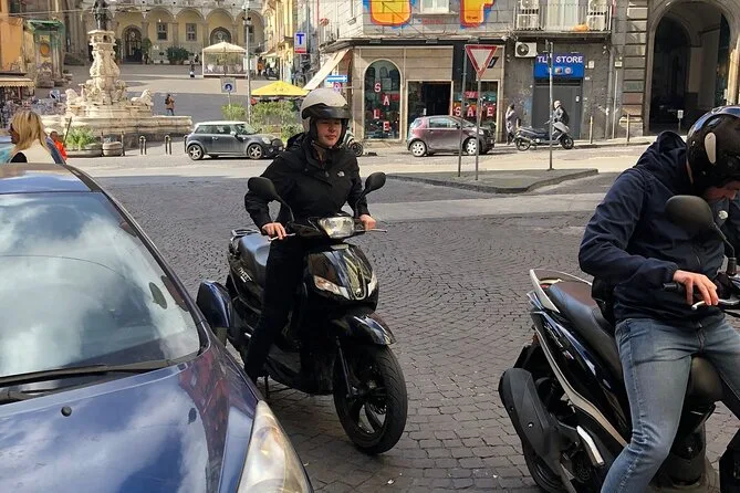 Devo ammettere che all’inizio ero un po’ nervoso all’idea di districarmi nel traffico di Napoli in scooter, ma la curiosità ha avuto la meglio. La nostra guida, Luca, ci ha raggiunti direttamente in Piazza del Gesù Nuovo, con un sorriso che sembrava già sapere che ci saremmo innamorati della città. Dopo qualche tentennamento iniziale (confesso di aver spento il motore un paio di volte), guidare lo scooter è diventato sorprendentemente semplice. C’è qualcosa di speciale nel sentire il vento mentre sfrecci tra quei vecchi palazzi di pietra che rende tutto più vivo. Ci siamo fermati in Piazza del Plebiscito e ho provato a immaginare tutte le storie che quelle pietre hanno visto — Luca ci ha indicato i posti dove la gente si ritrova per concerti o manifestazioni. Non è solo una cartolina; è un luogo vissuto.