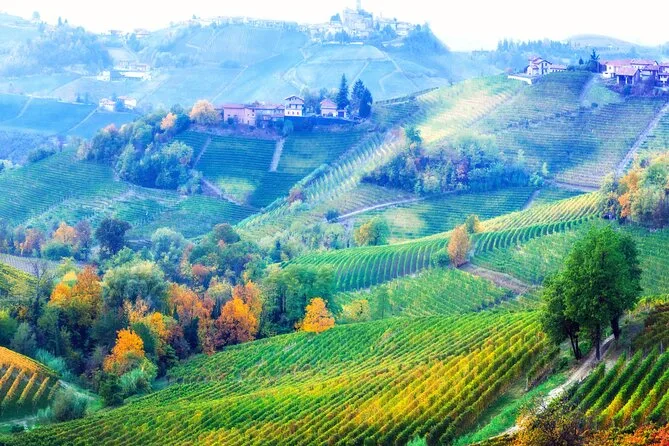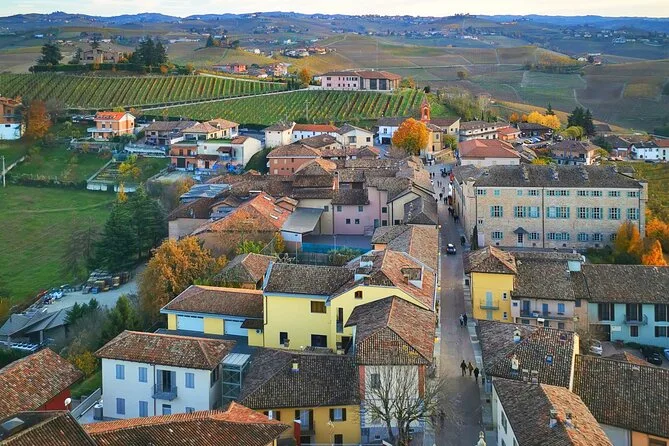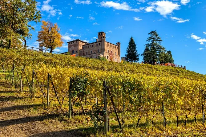 Il tuo giorno include viaggio andata e ritorno da Milano in minibus climatizzato, tour a piedi guidato ad Alba con tempo libero per esplorare negozi o pranzare, ingresso al Castello di Grinzane Cavour (o al belvedere di La Morra il martedì) e degustazione di sei vini rossi delle Langhe — incluso il Barolo — in una piccola cantina familiare, prima del ritorno comodo a Milano.