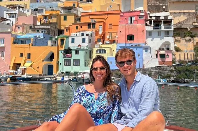 Farai il giro di Procida in barca con uno skipper locale, fermandoti a nuotare in calette tranquille e scattare foto subacquee con l’attrezzatura per snorkeling fornita. Aspettati risate sulle pronunce sbagliate dei nomi italiani, scorci delle casette pastello di Corricella e momenti di pace a deriva vicino all’isola di Vivara. Tornerai con la pelle scaldata dal sole e ricordi che durano più di qualsiasi souvenir.