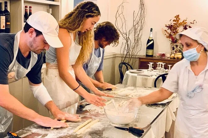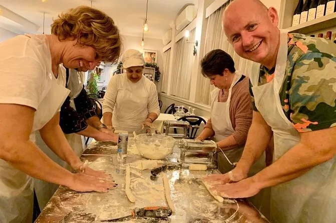 Abbiamo iniziato con le fettuccine — Marco ci ha dato uova e farina dicendo “dimenticatevi le dosi,” cosa che all’inizio mi ha un po’ spiazzato. L’impasto sembrava strano e grumoso, ma lui ha solo scrollato le spalle: “È lo stile romano,” ha detto, strizzandomi l’occhio. Sul tavolo si sentiva un leggero profumo di salvia dal burro che sobbolliva vicino. Qualcuno ha rovesciato del vino (non ero io, per una volta), e tutti hanno riso. C’era quel momento in cui impastavamo insieme, mani appiccicose, musica di sottofondo — sembrava meno una lezione e più una cucina dopo il pranzo della domenica.