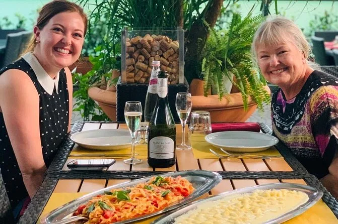 La tua giornata include un corso pratico di pasta e tiramisù in un ristorante romano vicino a Città del Vaticano, vino o prosecco illimitati per gli adulti (più soft drink), tutti gli ingredienti freschi forniti dallo chef locale, ricette da portare a casa e tanto tempo per goderti il pasto fatto insieme prima di tornare a esplorare Roma.