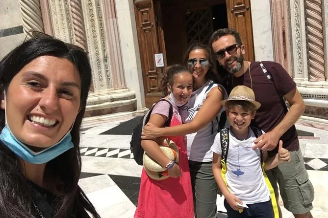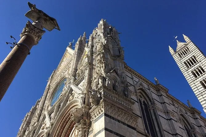 La tua giornata include una guida locale autorizzata che ti accompagnerà nel centro storico di Siena al ritmo che preferisci (2 o 3 ore). Esplorerai i principali luoghi come la Basilica di San Domenico, Piazza del Campo e vedute esterne del Battistero e del Duomo, con soste flessibili in base ai tuoi interessi. I biglietti per le visite interne (come il Duomo) si acquistano direttamente sul posto durante il tour.