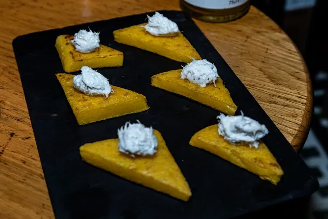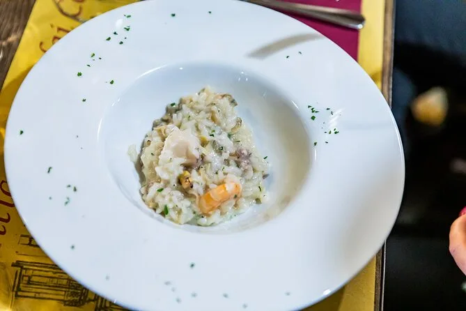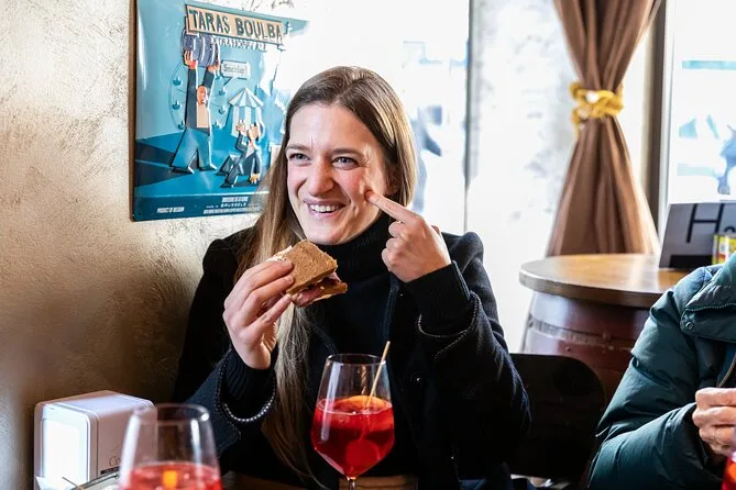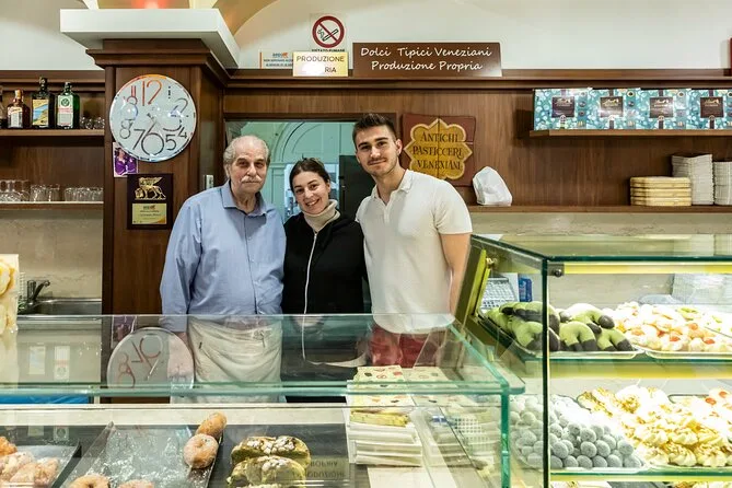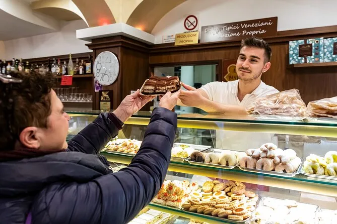 Il pomeriggio include degustazioni di tramezzini classici in una panetteria centenaria, cicchetti abbinati a prosecco col fondo in bacari tradizionali, una dimostrazione pratica per preparare lo spritz con altri assaggi veneziani come baccalà mantecato e saor, un piatto principale autentico con vino bianco locale in una trattoria di famiglia e la scelta tra tiramisù o gelato per dessert, prima di una passeggiata insieme lungo i suggestivi canali.