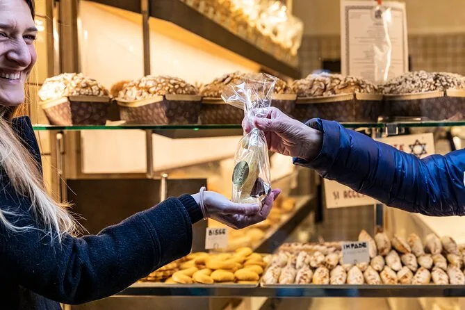 Sì, parte del percorso attraversa il Ghetto Ebraico storico con spiegazioni della guida locale.
