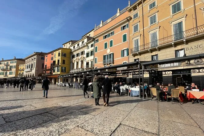 Il tuo giorno comprende un tour a piedi in piccolo gruppo con guida esperta nel centro storico di Verona, biglietti prenotati per l’Arena romana (se aperta), biglietto funivia solo salita per San Pietro con vista panoramica, e tanto tempo per domande e chiacchiere durante l’esplorazione.
