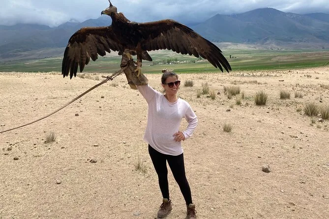 Visiterai la Torre di Burana (UNESCO), la moschea Dungan e la chiesa ortodossa di Karakol, oltre a vedere una dimostrazione di caccia all’aquila.