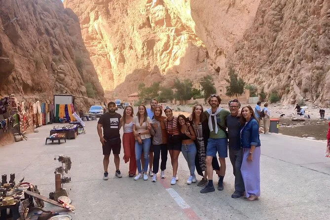 La mattina dopo è arrivata presto (di nuovo cammelli), poi una breve sosta a Rissani dove la guida locale ci ha raccontato dei mercati delle datteri e delle rotte delle carovane — probabilmente ho storpiato il suo nome quando ho provato a ringraziarlo in arabo. Abbiamo percorso quella che chiamano la Strada delle Mille Kasbah; alcune sembravano fuse nelle colline, altre avevano ancora bambini che salutavano dai tetti. Il pranzo è stato vicino al Gole di Todra — Fanta fredda, pollo alla griglia, polvere sulle scarpe — poi una passeggiata tra quelle pareti altissime dove ogni suono rimbalzava.