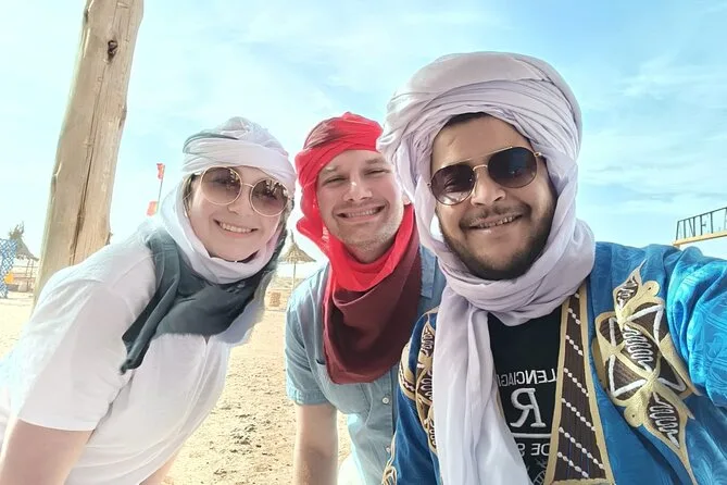 Il viaggio include pick-up in hotel a Fez, tutti gli spostamenti con minivan o minibus climatizzato e autista professionista, due notti di pernottamento (una in campo tendato berbero con giro in cammello nell’Erg Chebbi e una in hotel 3 stelle), possibilità di sandboarding, visite guidate a Rissani e Ait Ben Haddou, oltre a cene tradizionali sotto il cielo del Sahara prima di arrivare a Marrakech.