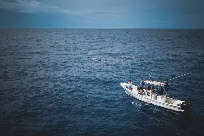 Partirai prima dell’alba a Mauritius su una barca privata con un equipaggio locale per avvistare balene e nuotare con i delfini. Ascolta le balene con un idrofono, immergiti in acque tranquille con i delfini se le condizioni lo permettono e gusta snack mentre il sole sorge. Un’avventura tranquilla, autentica — a volte un po’ caotica ma sempre indimenticabile.