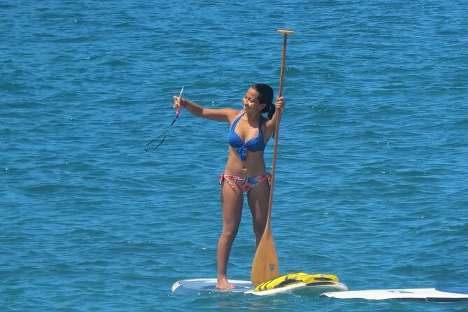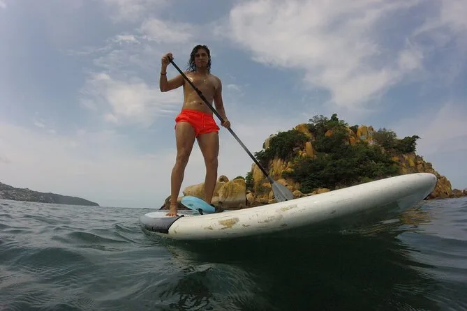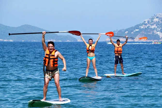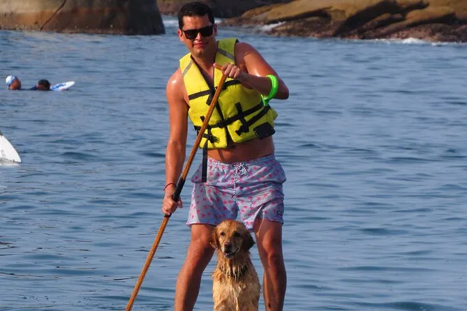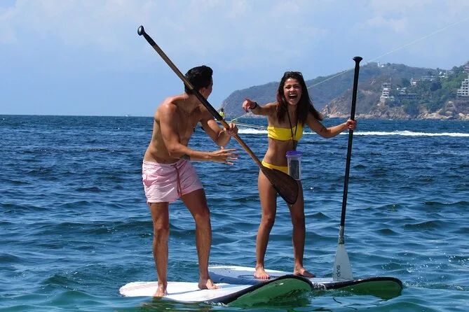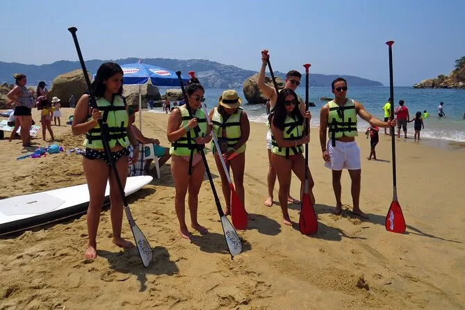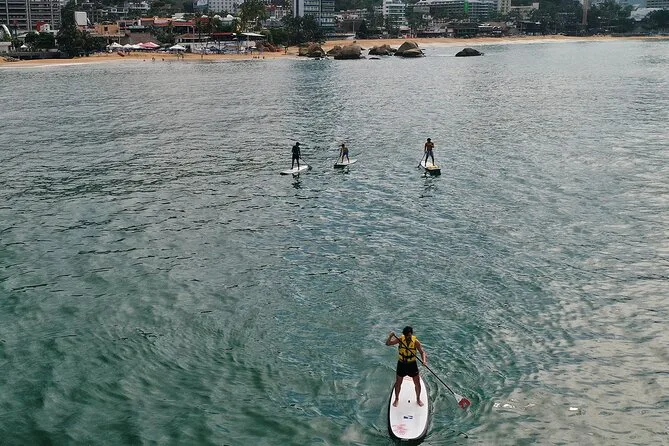La tua mattinata include l’uso di una paddle board appositamente progettata con pagaia abbinata e un comodo giubbotto salvagente su misura. Istruttori locali ti accompagnano dalla spiaggia nella baia di Acapulco vicino all’isolotto El Morro — non serve saper nuotare — e puoi portare anche il tuo animale.