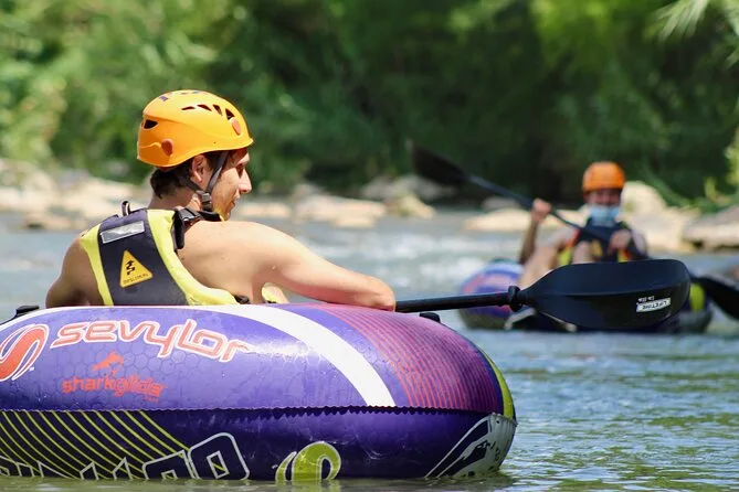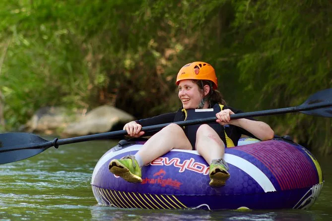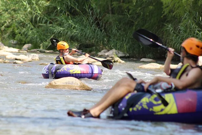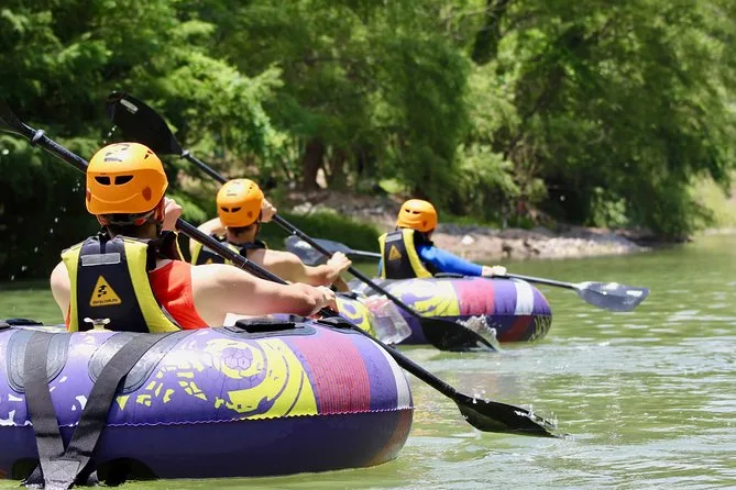 Il secondo giorno inizia con la colazione—uova rancheras se sei fortunato—prima di andare al fiume per il tubing. Quei grandi gommoni sembrano buffi, ma sono perfetti per scivolare lungo circa tre chilometri di anse del fiume. L’acqua è abbastanza fredda da svegliarti subito! A volte si vedono martin pescatori sfrecciare sopra o si sentono rane gracidare dalle rive fangose. Ci sono momenti di calma mentre si galleggia, seguiti da esplosioni di risate quando affrontiamo piccoli rapide.