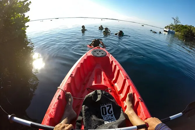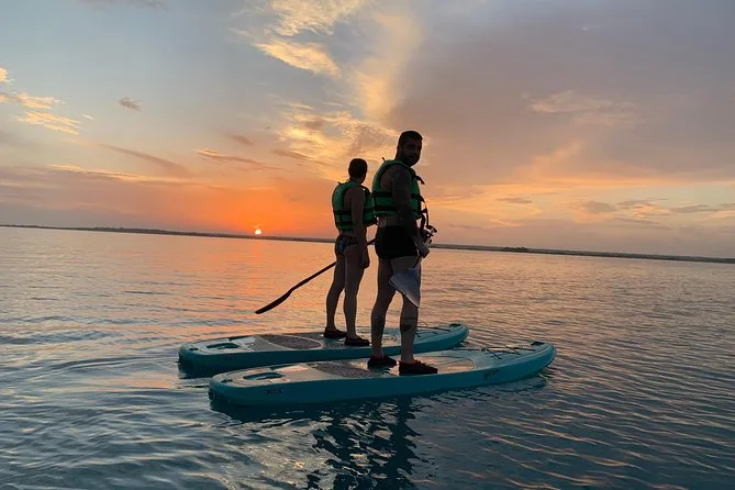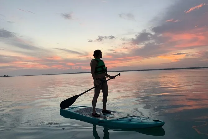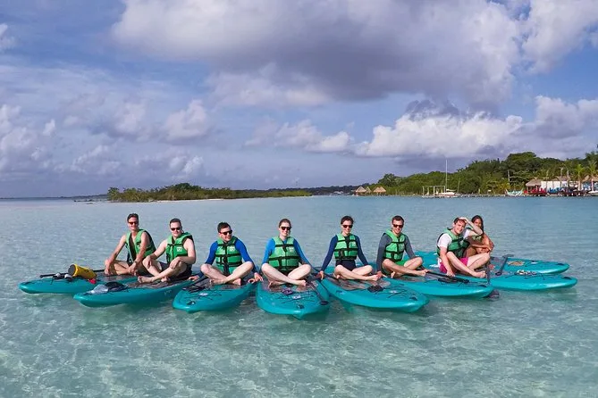 La tua mattina include paddleboard o kayak nella laguna di Bacalar all’alba con una guida locale che scatta foto lungo il percorso; acqua in bottiglia, frutta e snack per ricaricarti, oltre a tutta l’attrezzatura di sicurezza come i giubbotti salvagente per tutto il tempo sull’acqua.