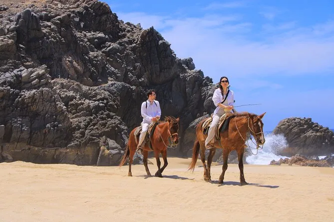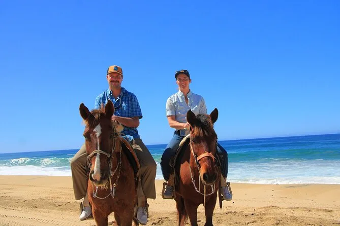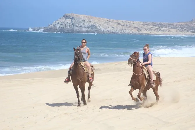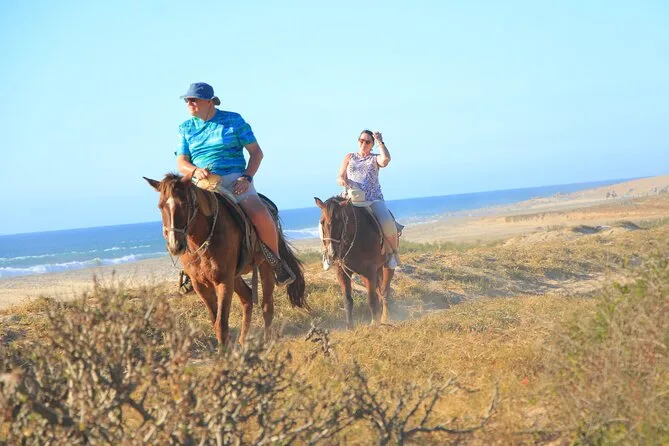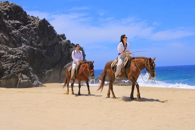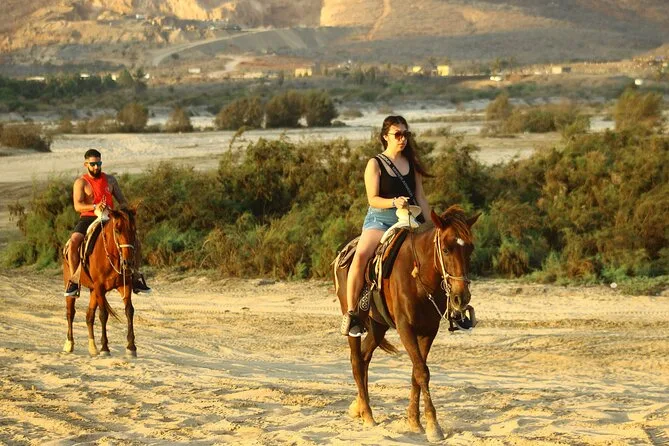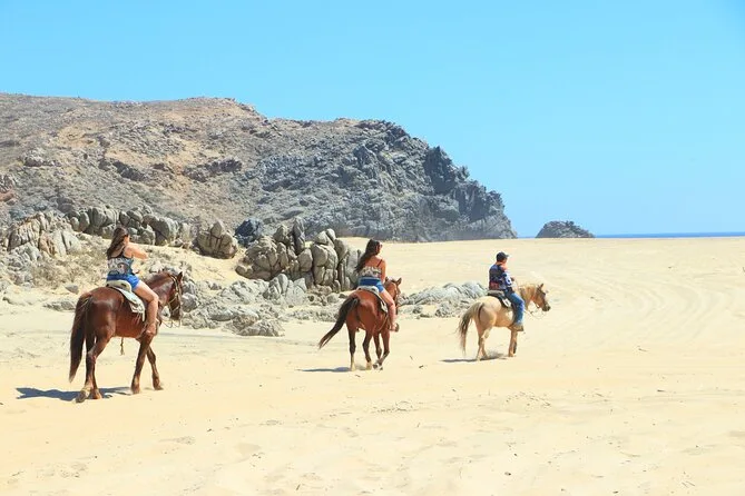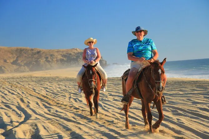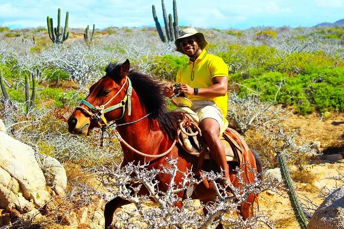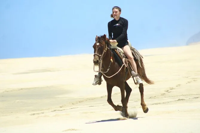 Il tuo giorno include il pick-up con il van di Real Baja Tours dal tuo alloggio a Cabo, tutta l’attrezzatura di sicurezza necessaria per la passeggiata a cavallo nel deserto e lungo le spiagge di sabbia bianca, una guida locale che segue il tuo ritmo, acqua purificata durante il percorso, accesso ai bagni alla fine e una degustazione di tequila gratuita prima del rientro.