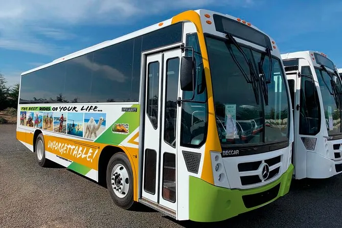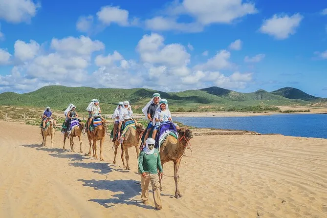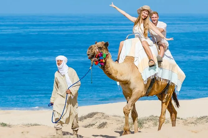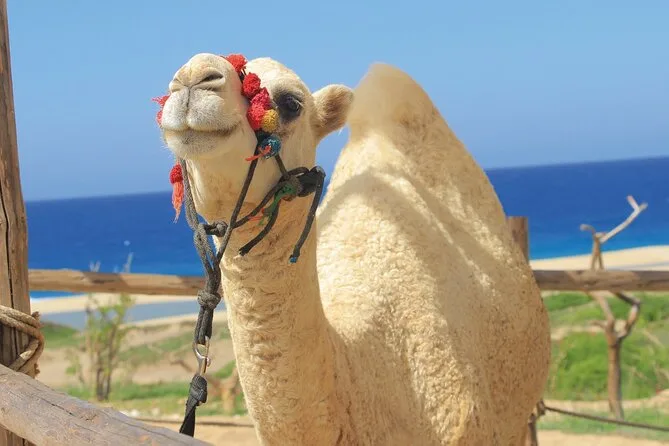 La tua giornata include trasporto andata e ritorno dal tuo hotel o punto d’incontro a Cabo San Lucas o San José del Cabo, la guida di esperti addetti bilingue durante il giro in cammello di 30 minuti sulla spiaggia (con tanto tempo per accarezzare e dare da mangiare), un emozionante safari nel deserto attraverso i paesaggi della Baja, un pranzo completo con super burros di manzo, maiale e pollo più bibite e acqua—e si conclude con una degustazione informale di tequila prima di tornare a casa con la sabbia addosso ma felici.