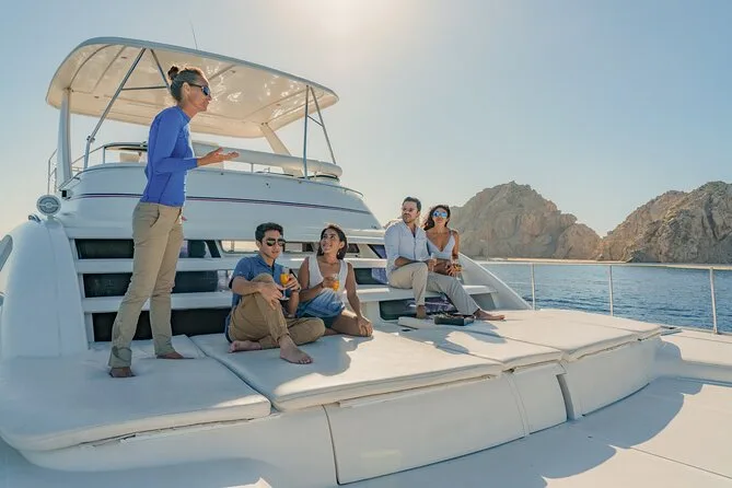 Il tuo giorno include il trasferimento andata e ritorno in van climatizzato a Los Cabos, tutti gli snack e le bevande alcoliche a bordo (con opzioni vegetariane su richiesta), l’uso dell’idrofono per ascoltare i canti delle balene mentre navighi vicino a El Arco e lungo la costa del Mare di Cortez, per poi tornare comodamente in hotel.