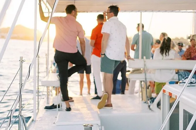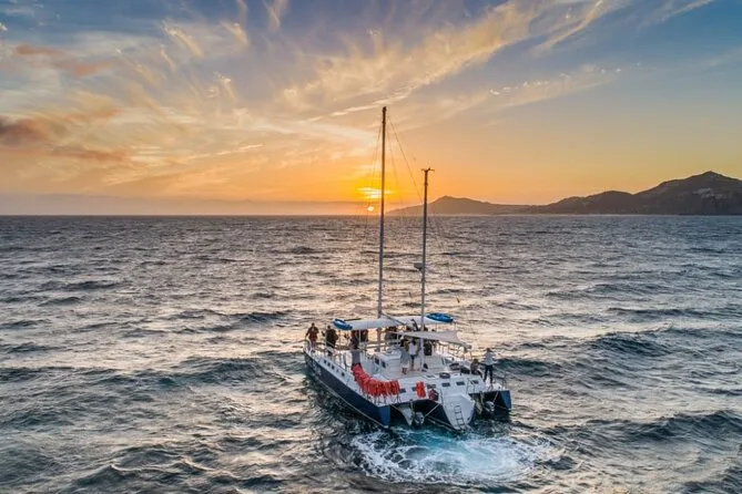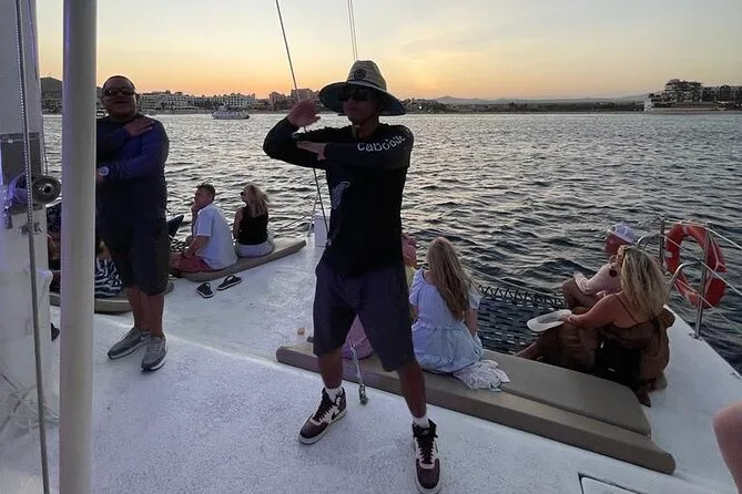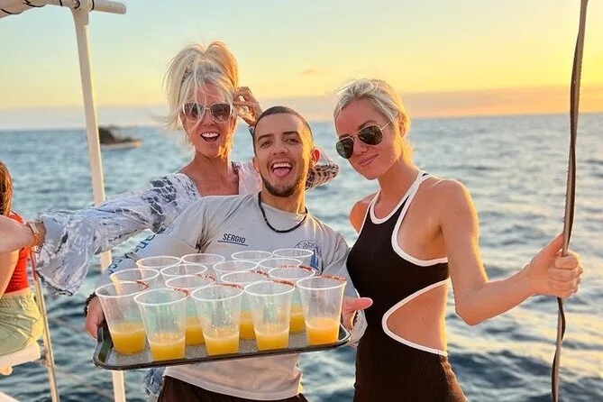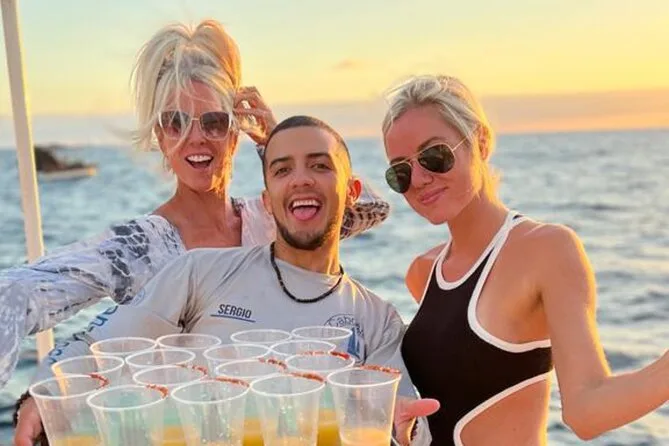 La tua serata comprende open bar illimitato con cocktail e bevande analcoliche serviti da una crew amichevole a bordo di un ampio trimarano. Avrai a disposizione snack messicani leggeri — come guacamole, salsa e insalata di tonno fresca — oltre a zone d’ombra e servizi igienici, prima di tornare a riva dopo il tramonto.