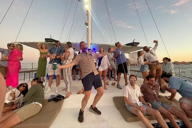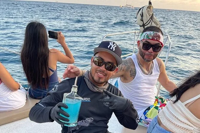 La crociera include open bar illimitato, acqua in bottiglia, bibite e succhi, servizi igienici separati per uomini e donne, più snack leggeri come guacamole, salsa, insalata di tonno e patatine.