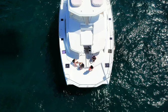 Il pranzo era semplice ma davvero perfetto: panini con insalata croccante, frutta che sembrava vera luce del sole e un guacamole che Javier ha giurato fosse “autentico”. Si è fatto una risata quando ho provato a dire grazie nel modo giusto — probabilmente l’ho detto malissimo. C’era un open bar, così ognuno si preparava il suo drink o sorseggiava una birra fresca al sole. Ci siamo fermati in un’altra baia per un altro tuffo o semplicemente per rilassarci sul ponte. Sono rimasto un po’ sopra, con i piedi a penzoloni sul bordo, a guardare i riflessi del sole sull’acqua, pensando a quanto a volte ci dimentichiamo di rallentare finché non ci pensa un posto così.