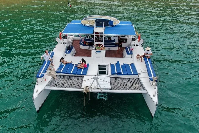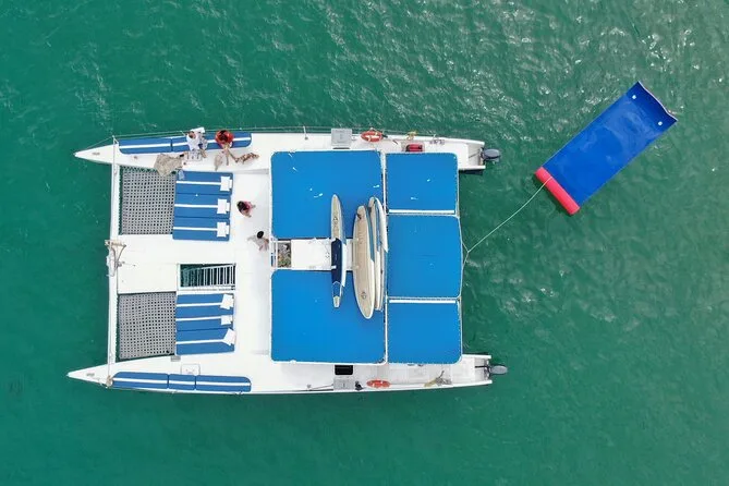 Il tuo giorno include il pick-up e il ritorno in hotel con veicolo climatizzato; tutte le tasse; uso di paddleboard, kayak, materassino galleggiante e attrezzatura completa per snorkeling; oltre a bevande illimitate da un open bar con cocktail e bibite. Il pranzo è servito a bordo con baguette al tacchino, piatti di frutta fresca, guacamole con salsa e patatine—e, naturalmente, tante risate grazie a un equipaggio locale professionale prima di tornare a riva.