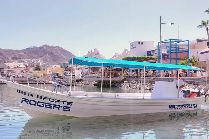 Il tuo giorno include un giro condiviso in barca con fondo trasparente nella baia di Cabo San Lucas con una guida locale che racconta le tappe come Pelican Rock e la Grotta dei Pirati; a bordo c’è un bagno per il comfort e la possibilità (a pagamento) di scendere in una delle tre spiagge, se le condizioni meteo lo permettono, con ritorno a orari prestabiliti.