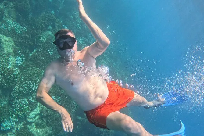 Il tuo giorno include l’uso dell’attrezzatura da snorkeling e abbondante acqua in bottiglia e bibite per rinfrescarti tra un tuffo e l’altro. L’equipaggio si assicura che tutti si sentano a proprio agio salendo e scendendo dalla barca grazie alla scaletta estesa, così puoi concentrarti solo sul goderti le calette tranquille senza pensieri.