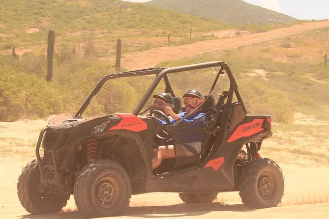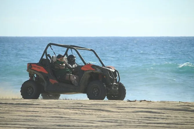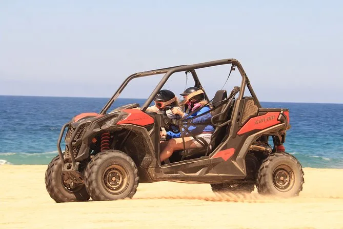 La giornata include il trasporto dal tuo hotel a Cabo San Lucas con il furgone di Real Baja Tours, tutta l’attrezzatura di sicurezza per guidare UTV doppi o quad a seconda del gruppo, acqua purificata durante il percorso, tante soste per foto vicino al surf del Pacifico e si conclude con una degustazione di tequila gratuita prima del rientro.