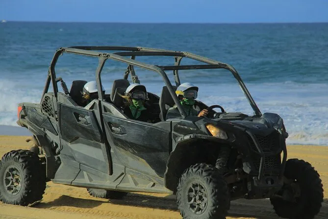 Scopri il lato selvaggio della Baja con questo tour in UTV a Cabo—corri tra i sentieri del deserto di Migrino, fermati per ammirare il Pacifico e rilassati con una degustazione di tequila sulla spiaggia. Guide locali esperte e pick-up in hotel per un’esperienza senza pensieri. Emozioni forti e momenti da ricordare.