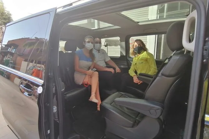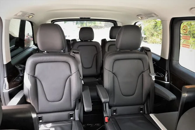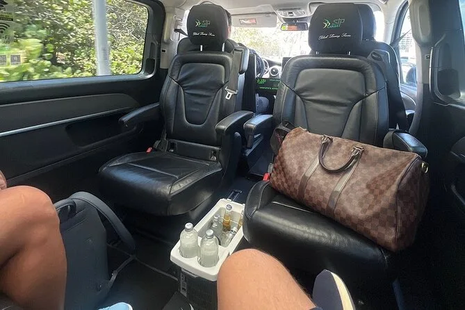 Il tuo viaggio di sola andata include il pickup in aeroporto da un autista locale in divisa all’aeroporto di Cancun, viaggio in una Mercedes Benz minivan sanificata con sedili in pelle reclinabili e doppio tetto apribile, due birre a persona più acqua minerale dal servizio bar a bordo, asciugamani per il viso per rinfrescarsi dopo il volo, WiFi affidabile durante tutto il tragitto—e tanto spazio per rilassarti prima di arrivare in hotel o a destinazione.