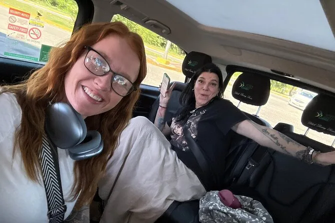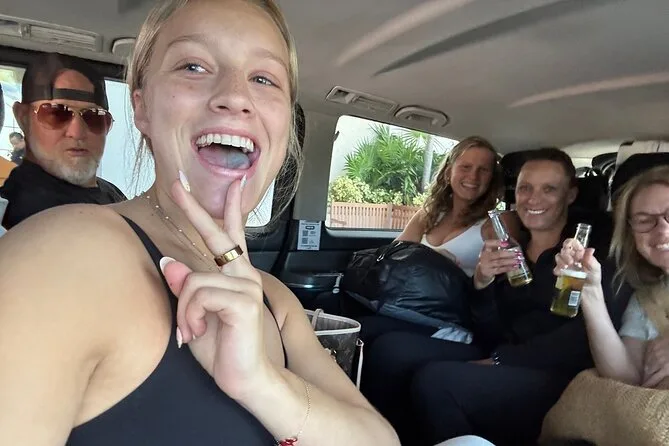 Non mi aspettavo che la van profumasse di vero cuoio—non quella plastica finta—e su ogni sedile c’erano piccoli asciugamani arrotolati per il viso. Abbiamo preso due birre dal minibar (due a testa incluse, un bel gesto) e ci siamo lasciati andare in quei sedili grandi e comodi. Armando ci ha indicato dove non fermarci fuori (“Ignora chi prova a dirottarti,” ha detto con uno sguardo che mi ha fatto fidare subito). Ho visto altri viaggiatori cadere nelle trappole dei venditori di timeshare vicino all’uscita; qui si fa presto a diventare confusi. Ma dentro la nostra Mercedes era tutto silenzio, a parte Li che rideva del mio spagnolo (“cerveza” le sembrava buffo detto da me).