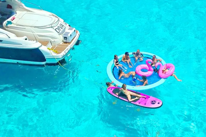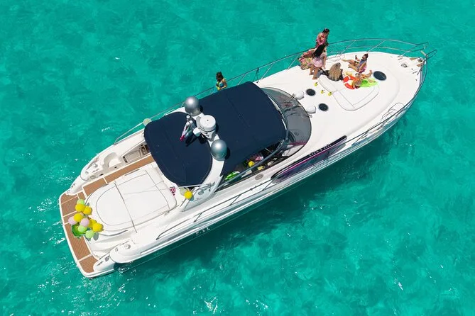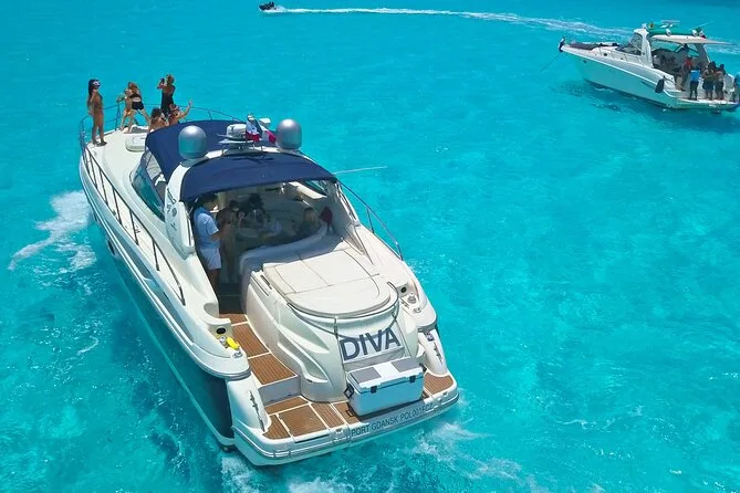 Il tuo giorno comprende il noleggio privato di uno yacht italiano da 60 piedi con equipaggio completo (capitano, due marinai e steward), uso delle attrezzature di sicurezza, oltre a maschere e pinne per lo snorkeling e paddleboard se vuoi. Avrai tre sacchi di ghiaccio pronti insieme a tante bottiglie d’acqua e bibite — porta solo gli snack o le bevande extra che preferisci prima di partire dalla marina di Cancun verso il mare aperto o Isla Mujeres, a seconda del percorso scelto.