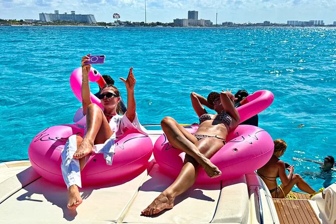 Salirai a bordo del tuo yacht privato a Cancun con un equipaggio locale amichevole, navigherai tra lagune di mangrovie e acque aperte caraibiche, farai soste per nuotare o fare snorkeling vicino a Isla Mujeres e ti rilasserai sul ponte con i tuoi snack e bevande preferiti. Un’esperienza rilassata, flessibile e piena di quei piccoli momenti che non si possono programmare — come una risata per una bevanda rovesciata o il gioco della luce al tramonto sulla baia.