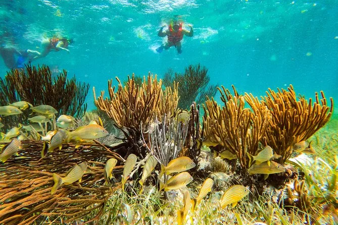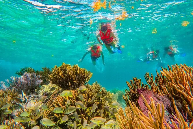 Immergiti nelle calde acque caraibiche vicino a Cancún per fare snorkeling sopra coralli vivaci e scoprire pesci curiosi nella barriera di Puerto Morelos. Poi rilassati con freschi tacos di pesce con i piedi nella sabbia e passeggia per il paese a tuo ritmo. Una giornata di piaceri semplici—aria salata, risate e quei piccoli momenti che non puoi programmare.