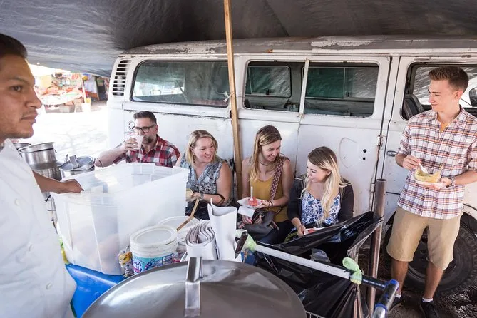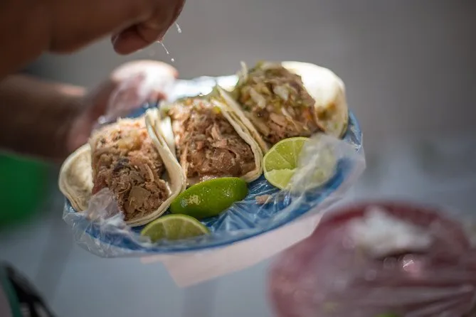 Il tour comprende cinque assaggi di street food con contorni come guacamole o salse (ti avviseranno se sono piccanti), acqua aromatizzata o succhi freschi a ogni fermata, spostamenti in auto climatizzata se necessario, e tanto tempo per passeggiare tra mercati e strade piene di murales con la tua guida locale, prima di tornare soddisfatto e probabilmente con un sorriso più grande del previsto.