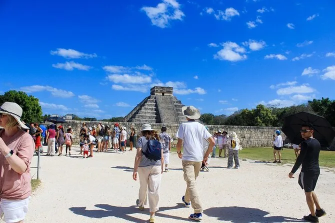 Il tuo giorno include trasporto da e per hotel o punto d’incontro, ingresso guidato a Chichén Itzá con racconti di una guida esperta bilingue, tempo libero per nuotare in un cenote sacro (con noleggio giubbotto obbligatorio), un pranzo abbondante a buffet messicano al ristorante Yaxkin, più soste rapide nel centro coloniale di Valladolid e in un negozio di artigianato Maya prima del rientro serale.
