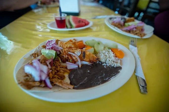 Il cenote è stato il prossimo — onestamente ero un po’ nervoso per il bagno, visto che bisogna indossare il giubbotto salvagente (che si noleggia lì), e l’acqua sembrava quasi nera in certi punti. Ma appena sono saltato dentro, l’acqua era così fredda da farmi sobbalzare e tutto è diventato silenzioso, tranne le risate di qualche bambino sopra di noi. La luce del sole entrava da un’apertura sul soffitto come un riflettore. Ancora adesso ricordo la sensazione dell’acqua sulla pelle — pungente e morbida allo stesso tempo. Il pranzo è stato in un grande locale all’aperto dove hanno servito cochinita pibil e riso; niente di sofisticato, ma dopo il bagno un pasto così ha tutto un altro sapore.