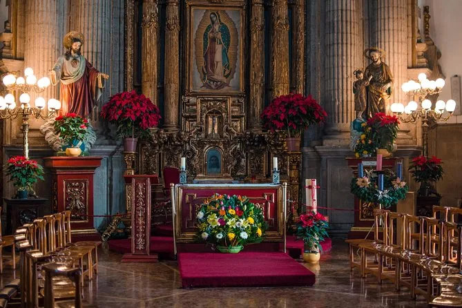 L’ultima tappa è stata la Basilica di Guadalupe. È affollata — gente che accende candele ovunque, alcuni in ginocchio in silenzio, altri che scattano foto. L’odore dentro è dolce e ceroso, mescolato ai fiori dei banchi fuori. La guida ci ha spiegato perché ogni anno arrivano così tanti pellegrini; non pensavo di emozionarmi, ma davvero c’è qualcosa nell’aria che ti fa fermare un attimo. A quel punto avevo i piedi doloranti e la testa piena di storie — ma continuo a ricordare quella luce verde-blu che filtrava dalle vetrate mentre qualcuno cantava piano vicino all’altare.