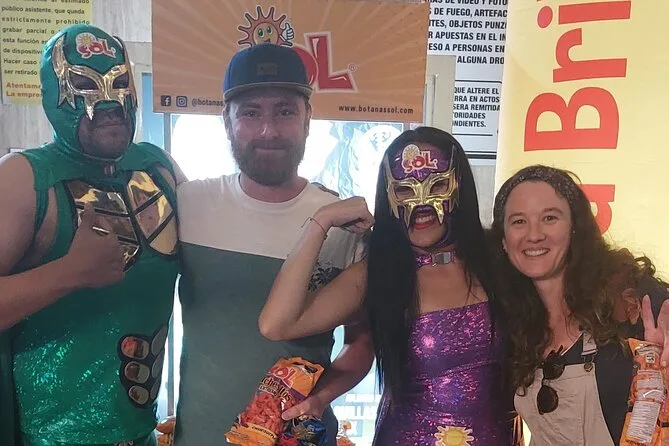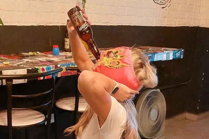 La tua serata include un bicchierino di mezcal di benvenuto in un bar o mezcaleria locale, la cena con tacos (anche vegetariani o vegani), una maschera da luchador da portare a casa come souvenir, tutti gli ingressi per le partite di Lucha Libre con la guida che ti spiega tutto lungo il percorso—e punti di drop-off sicuri vicino ai mezzi pubblici per tornare a casa.