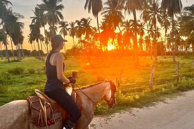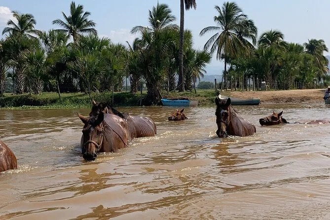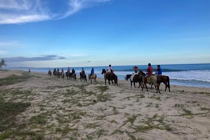 Il tuo giorno include il trasporto in veicolo climatizzato da vicino Manialtepec fino al punto di incontro con i cavalli; dopo aver cavalcato tra i campi lungo il fiume e sulla spiaggia al tramonto con la guida locale, avrai acqua di cocco o birra inclusa e tempo per rilassarti nella casetta gestita da una famiglia, dove potrai acquistare frutti di mare freschi prima del rientro.