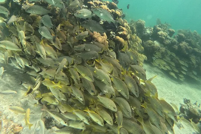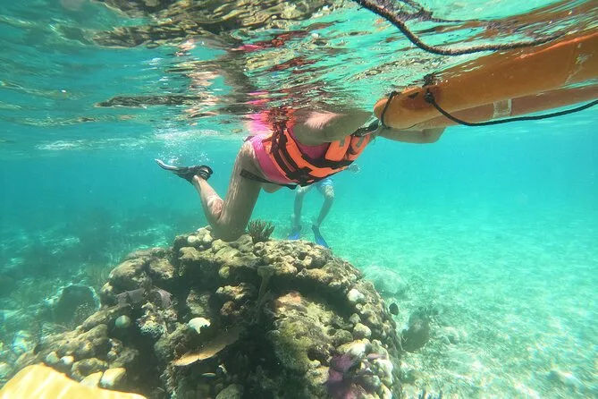 Il tuo giorno include snorkeling guidato nella barriera corallina di Mahahual con tutta l’attrezzatura fornita, acqua in bottiglia per rinfrescarti dopo il bagno, foto GoPro dei tuoi momenti sott’acqua, accesso a un beach club rilassato dove puoi restare quanto vuoi (paghi solo cibo e bevande), e trasporto pubblico facile per tornare al porto quando preferisci.