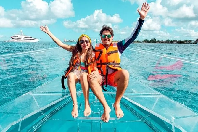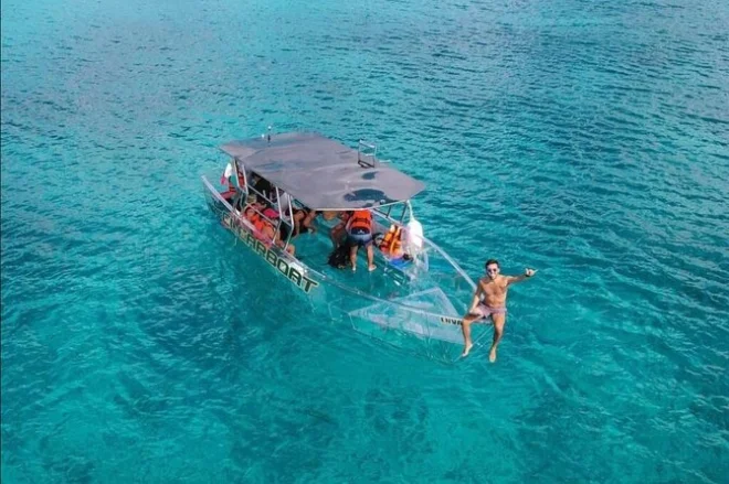 Eravamo a malapena a cinque minuti dall’inizio del tour a Cozumel quando la nostra guida, Luis, mi ha sorriso porgendomi una bottiglia d’acqua fresca — “Ti servirà per il sole,” ha detto. Non avevo idea di quanto avesse ragione finché non siamo saliti su quella barca trasparente. Il pavimento era di vetro, così potevi vedere i pesci sfrecciare sotto i piedi mentre la brezza salata mi scompigliava i capelli. Qualcuno dietro di noi ha esclamato quando uno stormo di pesci chirurgo blu è passato veloce. Strano a dirsi, pensavo che su una barca trasparente avrei avuto paura, invece sembrava di fluttuare più che navigare.