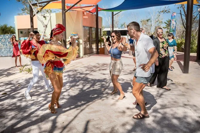 La tua giornata include l’ingresso completo a Kuzá Beach Park a Cozumel con accesso illimitato alla sua più grande spiaggia privata. Parteciperai a un laboratorio pratico per preparare tortillas, guacamole e tacos al pastor (con ricette incluse), più buffet illimitato con open bar. Lettini, amache, docce, spettacoli dal vivo, sentieri naturalistici—tutto compreso nella visita. Puoi aggiungere noleggi opzionali come kayak o trattamenti spa se vuoi più avventura o relax prima di andare via.
