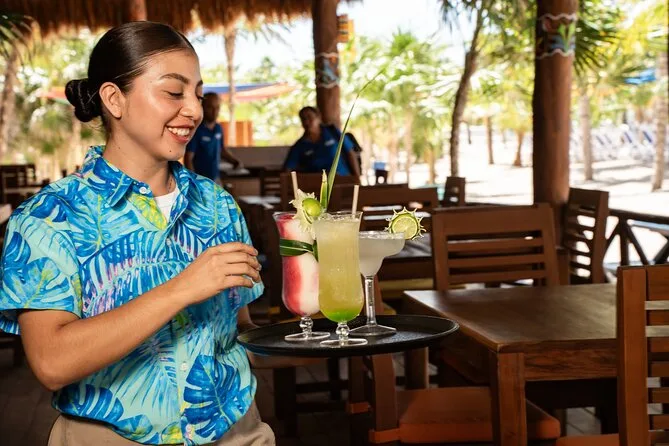 Metti le mani in pasta a Kuzá Beach Park di Cozumel: prepara tortillas sotto una palapa ventilata, assaggia i tuoi tacos al pastor e poi rilassati o nuota nella spiaggia privata più grande dell’isola, con buffet illimitato e open bar a portata di mano. Risate, storie locali e sapori che restano nel cuore.