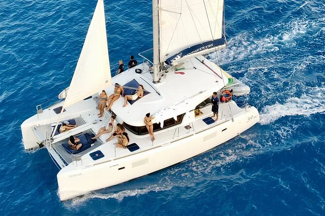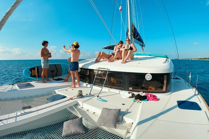 La tua giornata include cinque ore a bordo di un catamarano Lagoon da 39 piedi con equipaggio completo, tutta l’attrezzatura per lo snorkeling, accesso al paddle board se ti senti avventuroso, pranzo e snack preparati freschi a bordo e drink premium illimitati — il tutto al tuo ritmo con soste flessibili nei migliori angoli di Cozumel prima di tornare insieme a terra.