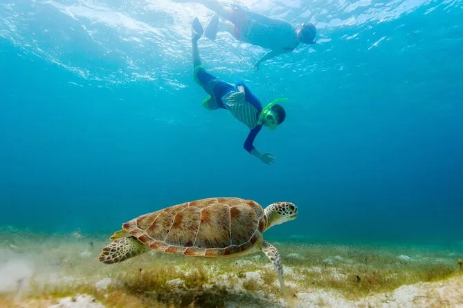 Salpa da Cozumel verso le barriere di Colombia e Palancar per snorkeling guidato tra pesci colorati, poi lasciati cullare dalla sabbia luminosa di El Cielo piena di stelle marine. Goditi open bar, ceviche fresco, frutta e relax al beach club The Money Bar. Risate, capelli salati e momenti di pura leggerezza ti aspettano.