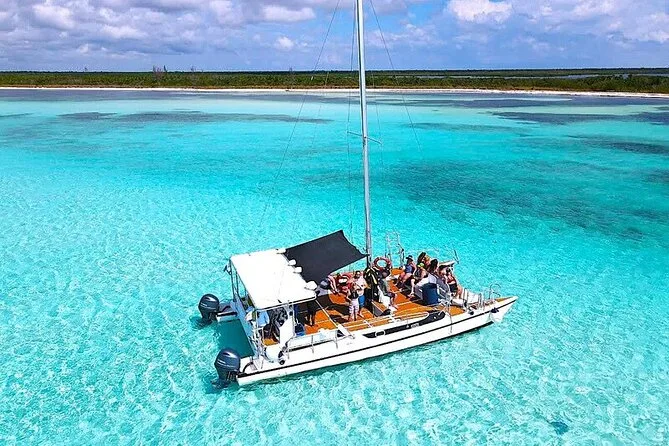 Il tuo giorno include l’uso di tutta l’attrezzatura per snorkeling e la guida di crew locali mentre esplori le barriere di Colombia e Palancar, prima di salpare verso la baia di El Cielo. A bordo troverai open bar con bibite, birra, margarita e punch al rum, oltre a ceviche fresco, frutta di stagione e patatine di mais. Avrai anche accesso alle strutture del The Money Bar Beach Club prima del rientro a terra.