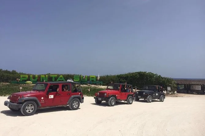 Guiderai la tua Jeep a Cozumel con una guida locale al fianco—visiterai le rovine Maya di San Gervasio, farai snorkeling a Chankanaab Beach Park, ti rilasserai sulle coste selvagge di Punta Sur e pranzerai in un locale frequentato dai locali. Aspettati aria salata, risate a tavola, storie autentiche e momenti più veri che perfetti.
